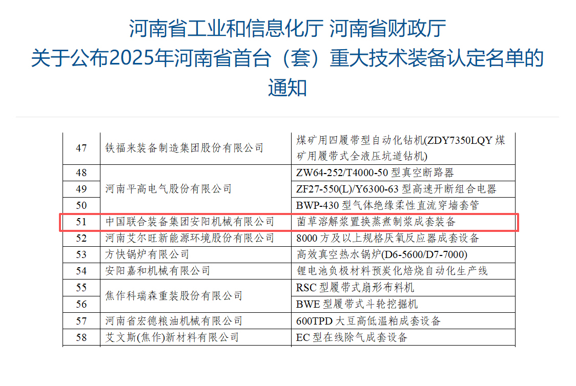 近日,河南省工業(yè)和信息化廳正式公布2025年河南省首臺(套)重大技術(shù)裝備認(rèn)定結(jié)果,中國聯(lián)合裝備集團(tuán)安陽機(jī)械有限公司(以下簡稱“安陽機(jī)械”)自主研發(fā)的菌草溶解漿置換蒸煮制漿成套裝備成功入選。這一認(rèn)定不僅是對安陽機(jī)械技術(shù)實(shí)力的高度認(rèn)可,更標(biāo)志著我國在非木漿制漿裝備領(lǐng)域?qū)崿F(xiàn)重大技術(shù)突破——成功破解溶解漿原料“卡脖子”難題,為綠色制漿產(chǎn)業(yè)的革命升級注入強(qiáng)勁動力。作為造紙及生物質(zhì)材料產(chǎn)業(yè)的核心裝備,該成套裝備實(shí)現(xiàn)了從“以草代木”到“高效低碳”的裝備革命,開啟行業(yè)發(fā)展新征程。